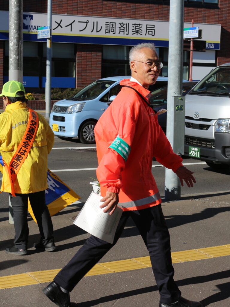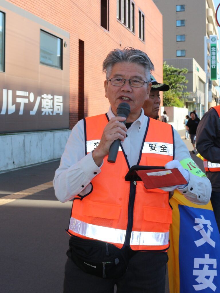 秋の交通安全、栄町交差点で街頭啓発