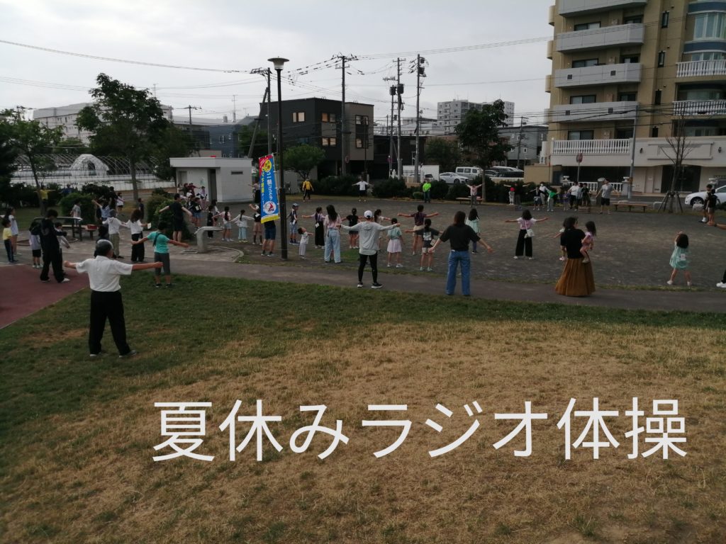 7/26 (火)から、本年度の夏休みラジオ体操を開催しています。最終日の 8/17 (水) まで、ふるってご参加ください。